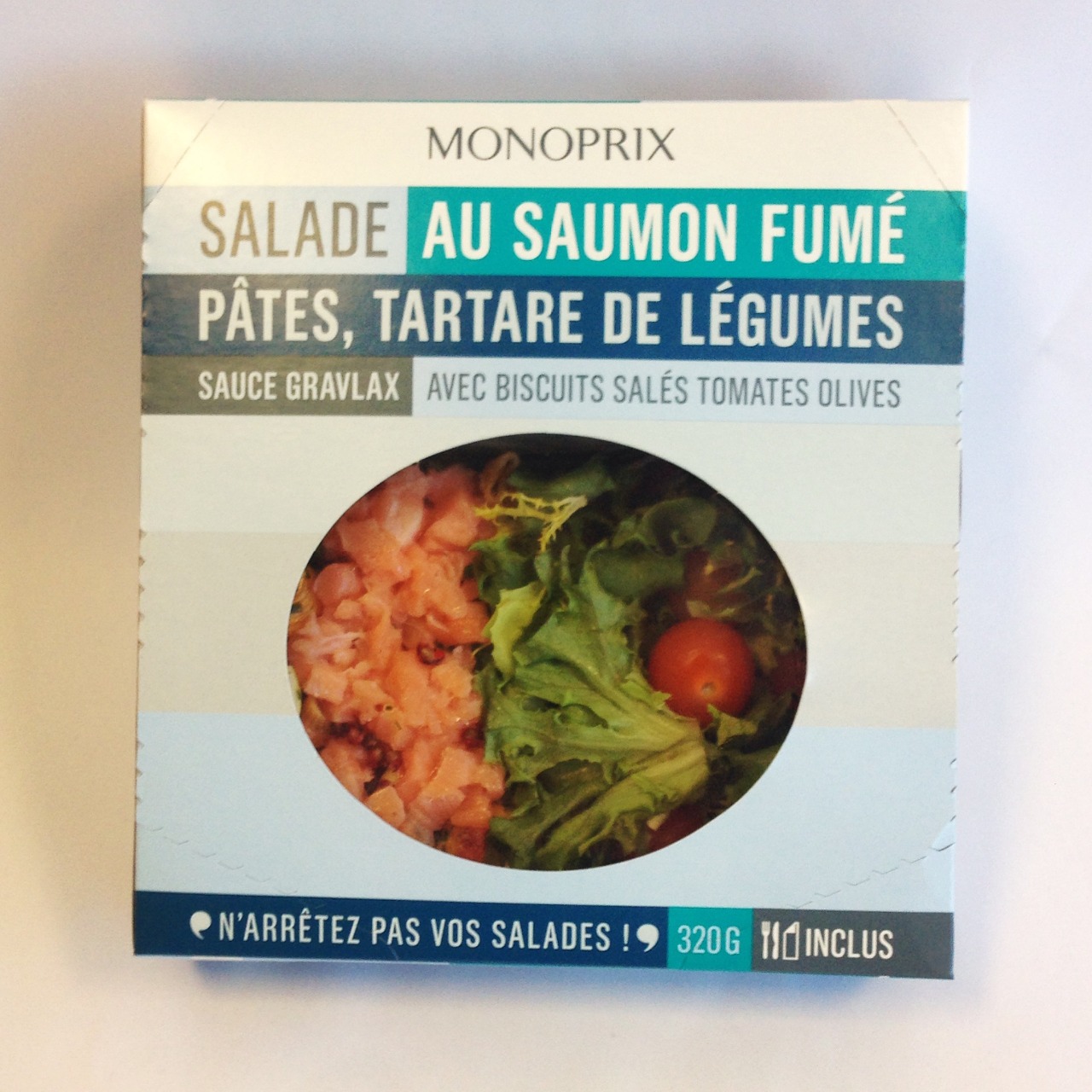 Salade au saumon fumé, pates et tartare de légumes (320g), 1€
