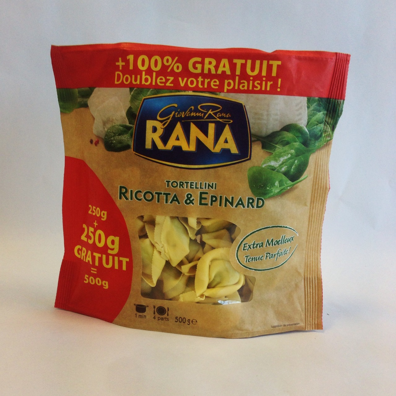 Tortellini ricotta epinard Giovanni Rana (500g), 1€